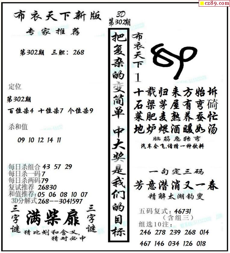 早版布衣2026016期3d图谜