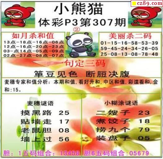 2021年307期牛彩网体彩P3画迷图谜汇总分享