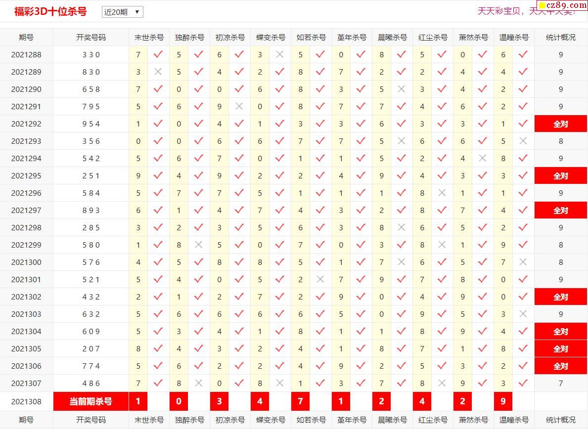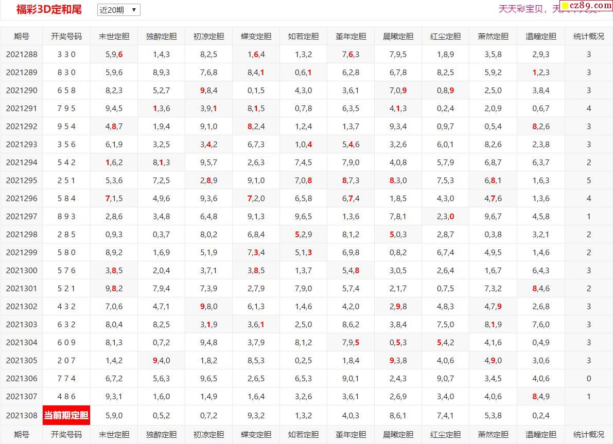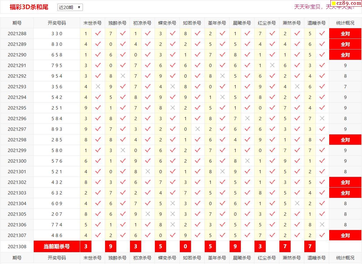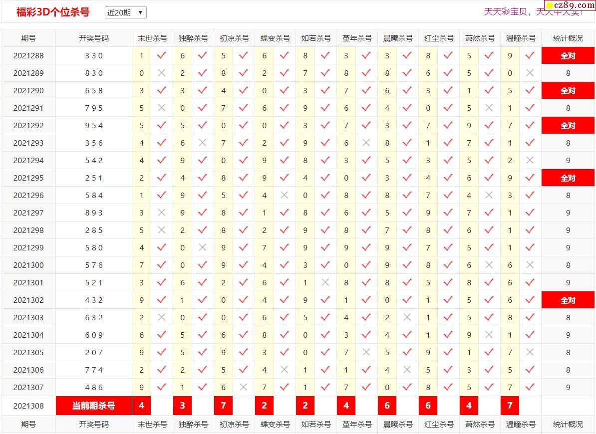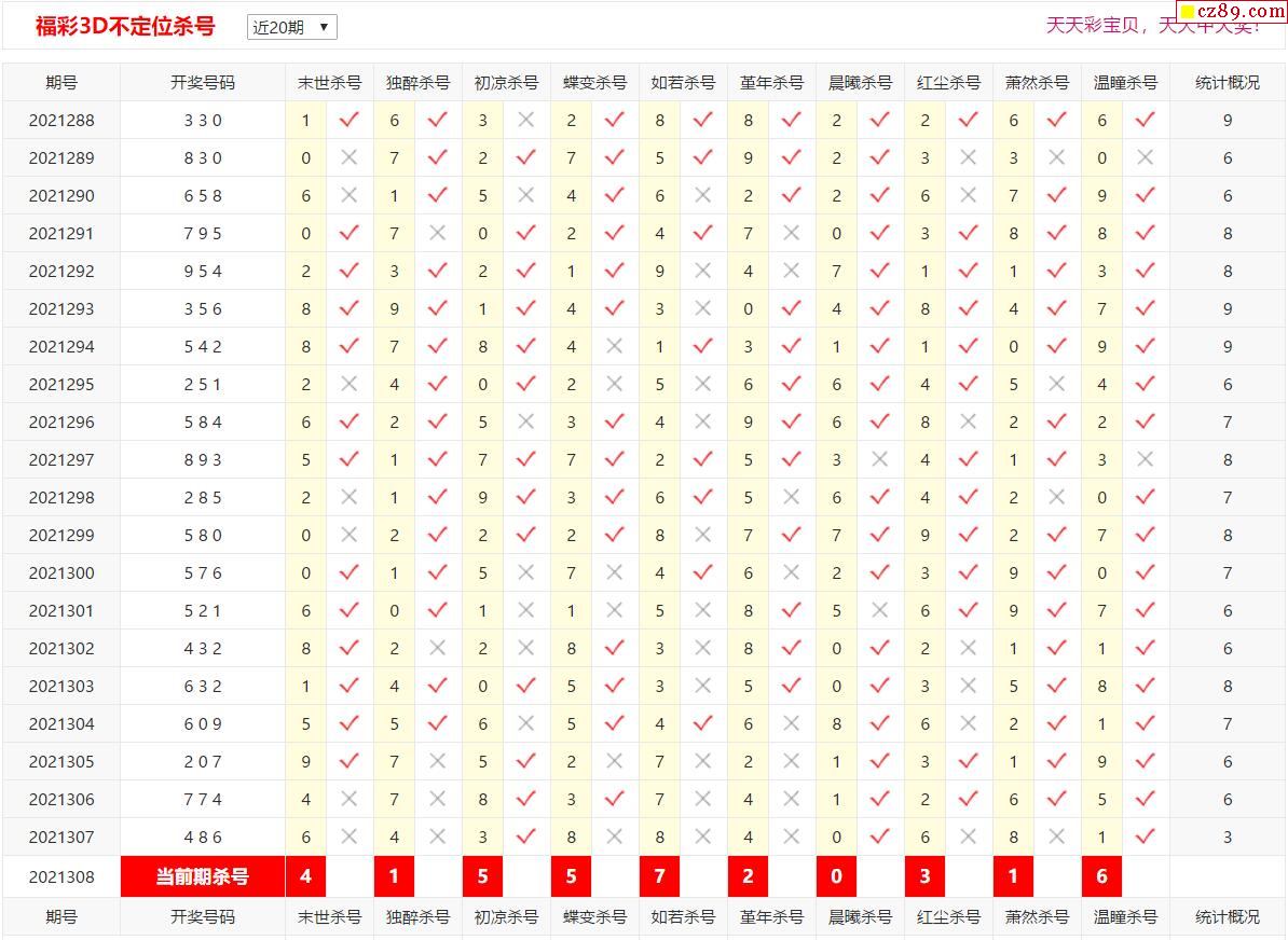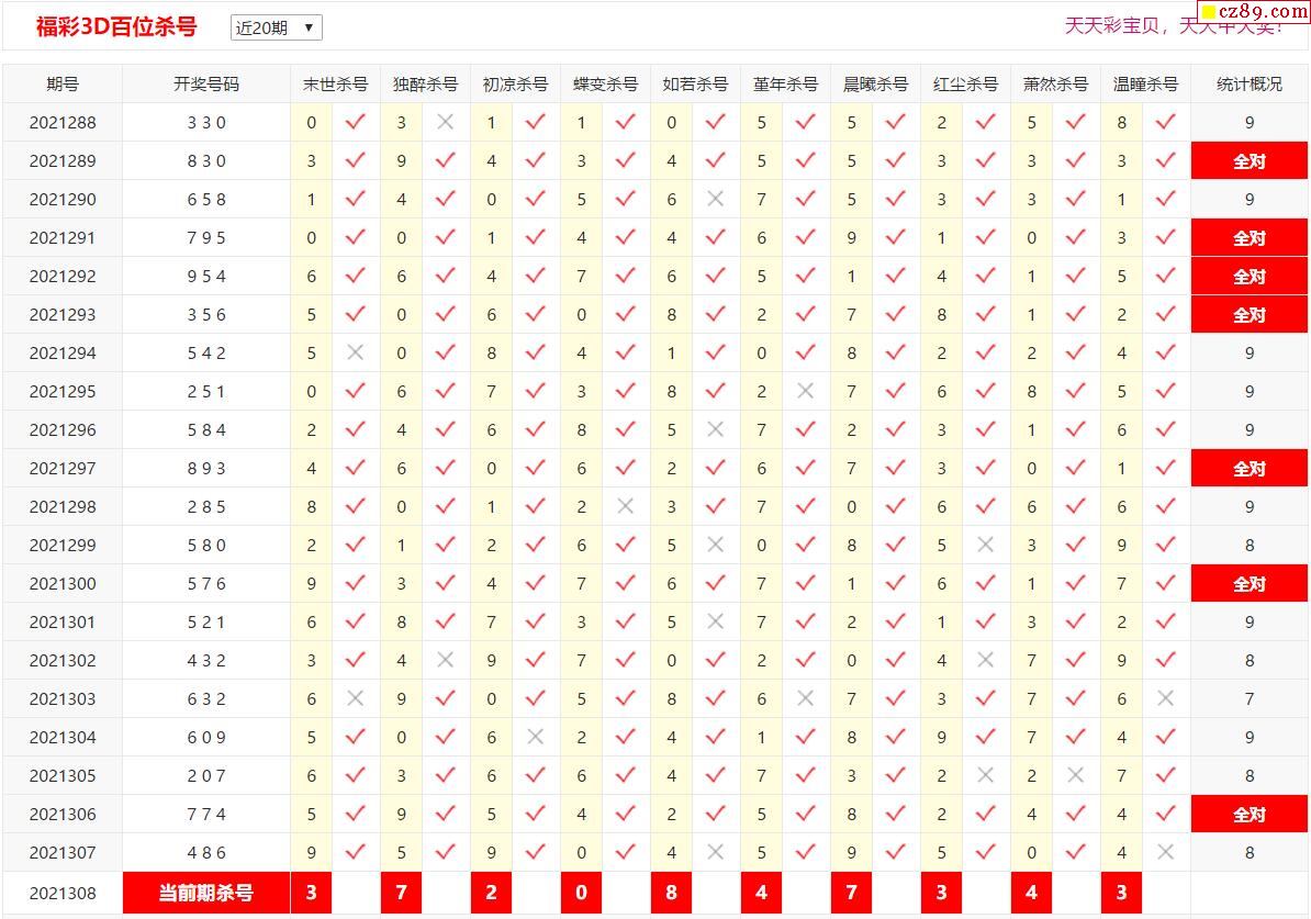 21年308期彩宝贝专家福彩3D杀号定码图表