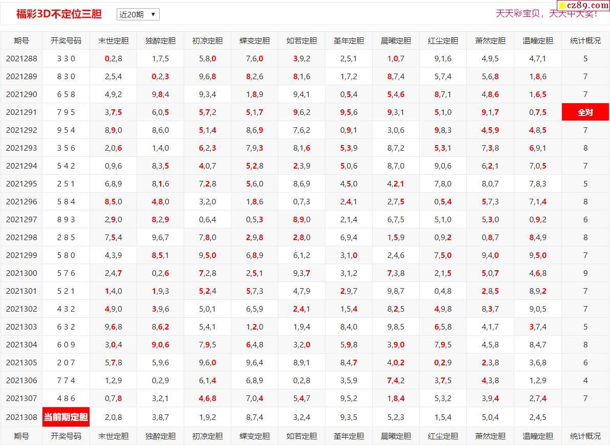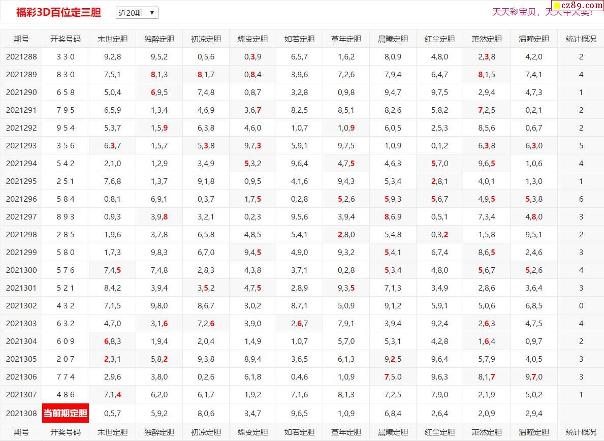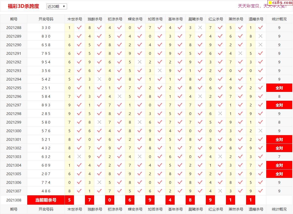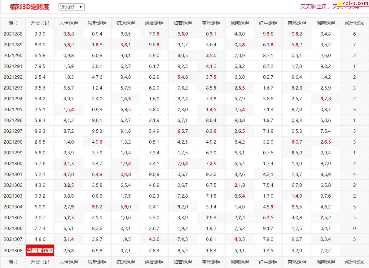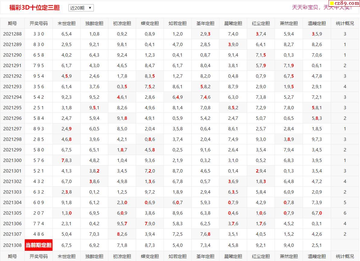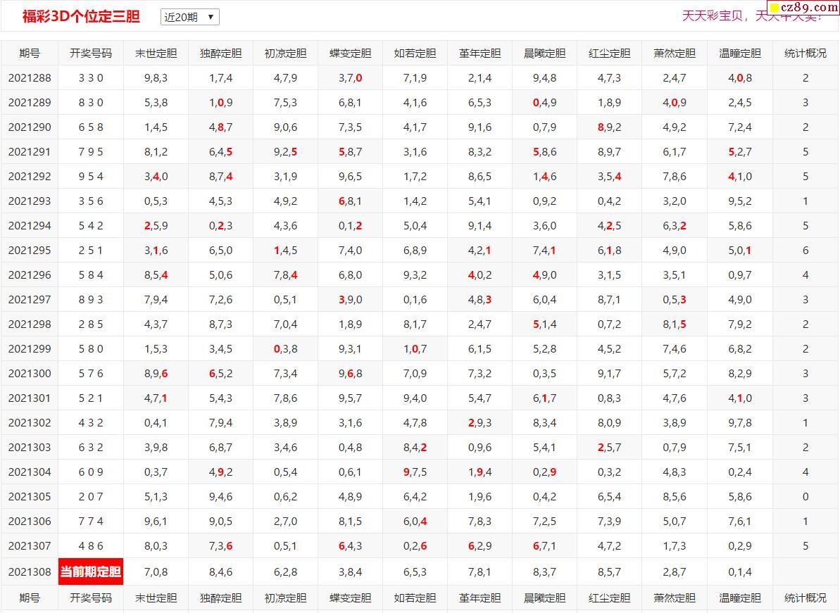 21年308期彩宝贝专家福彩3D杀号定码图表