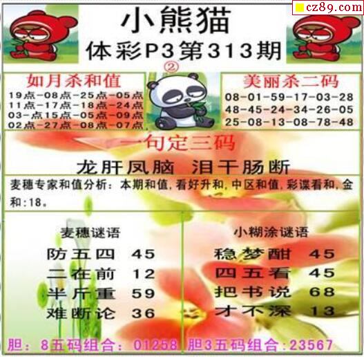 小熊猫2025335期体彩P3图谜