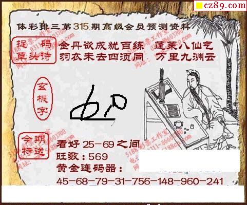 2021年315期牛彩网体彩P3画迷图谜汇总分享