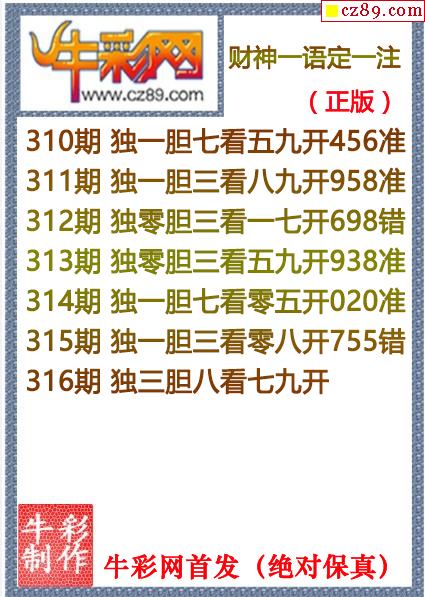牛彩版3D预测彩报图25年334期打印版