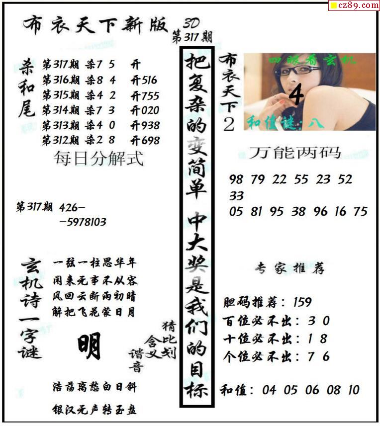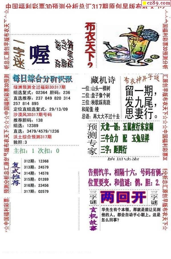 牛彩版3D字谜彩报图26年069期打印版