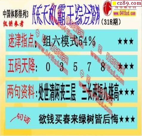 2021年318期牛彩网体彩P3画迷图谜汇总分享