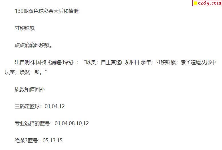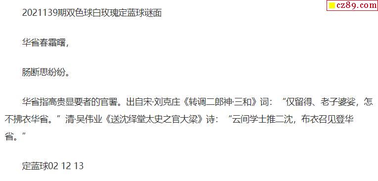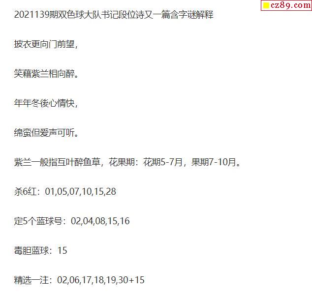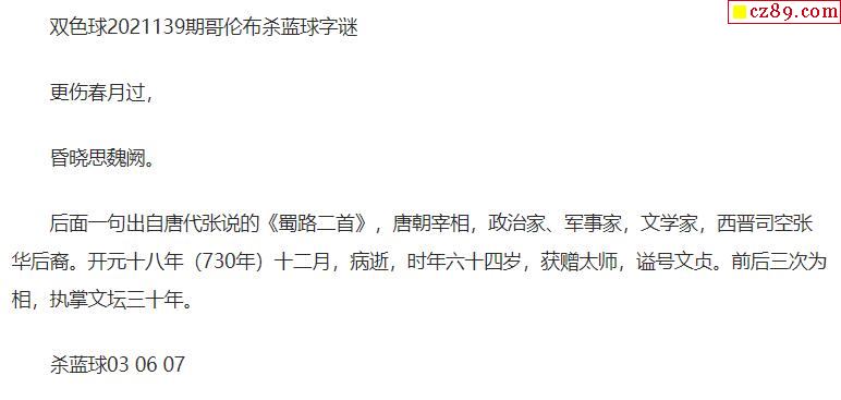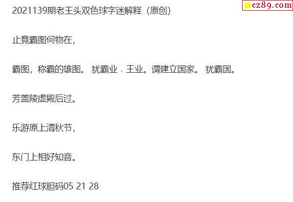 2021年139期牛彩网双色球字迷图谜汇总