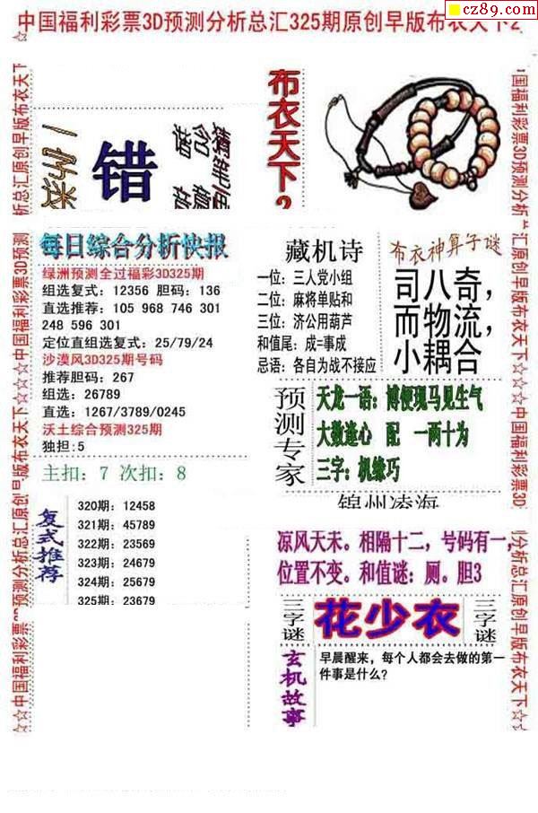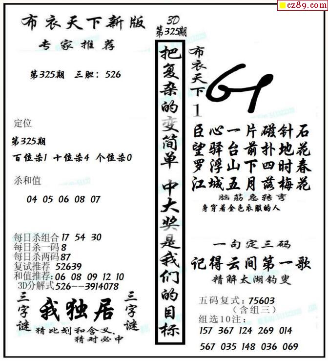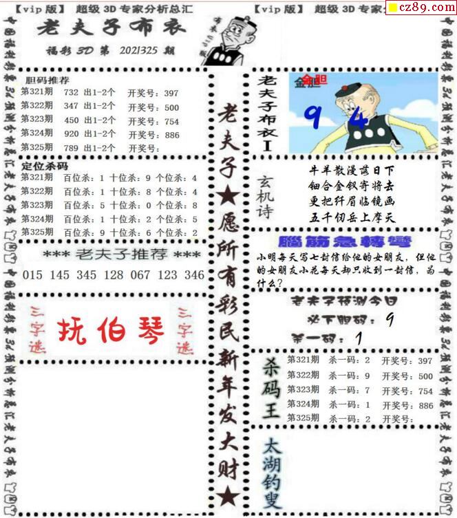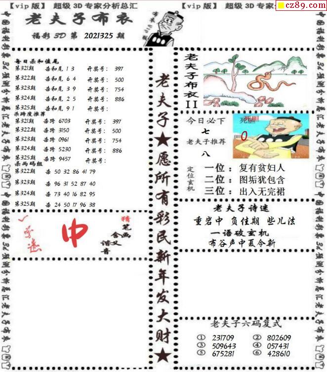 老夫子布衣2026068期3d图谜