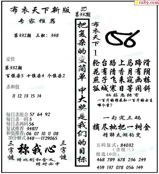 牛彩版3D字谜彩报图25年337期打印版