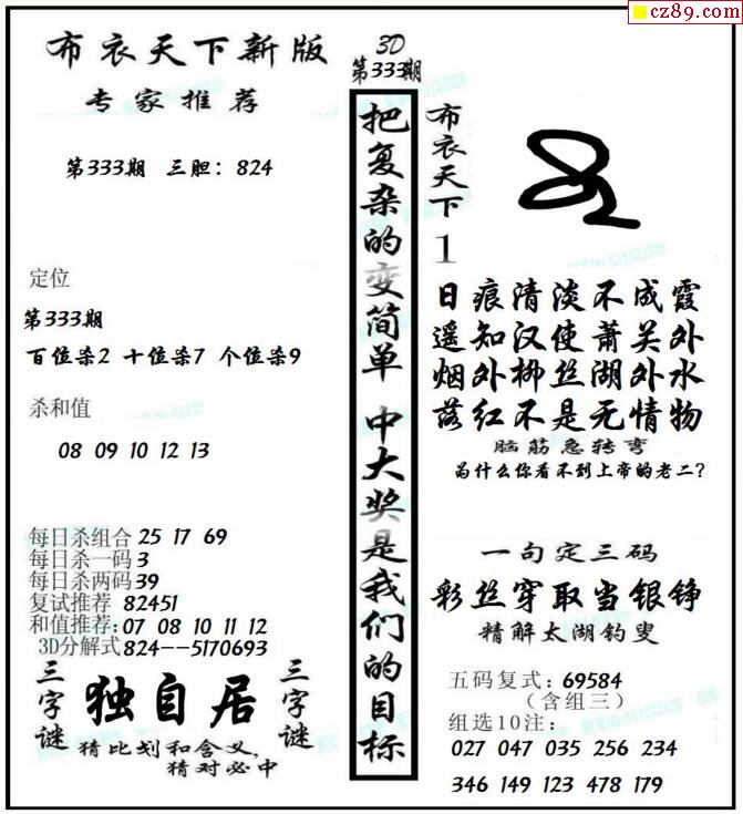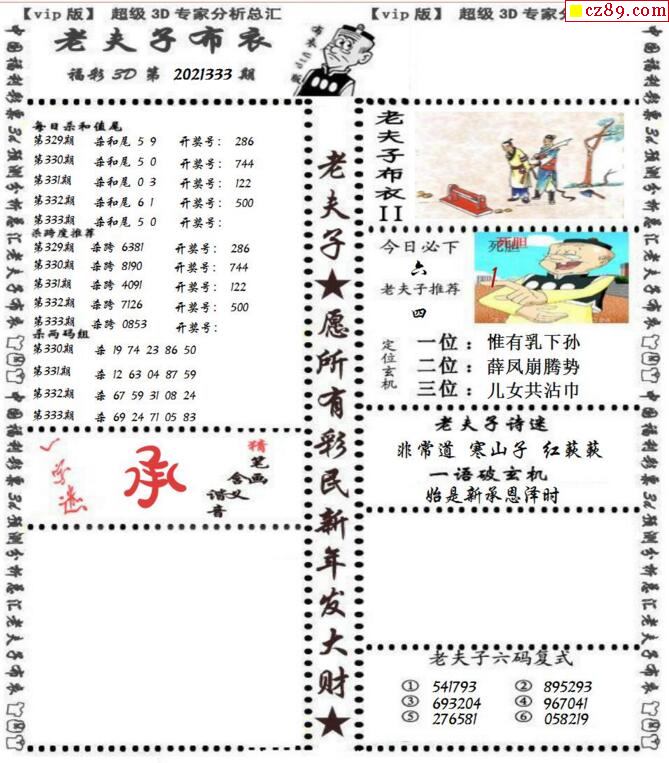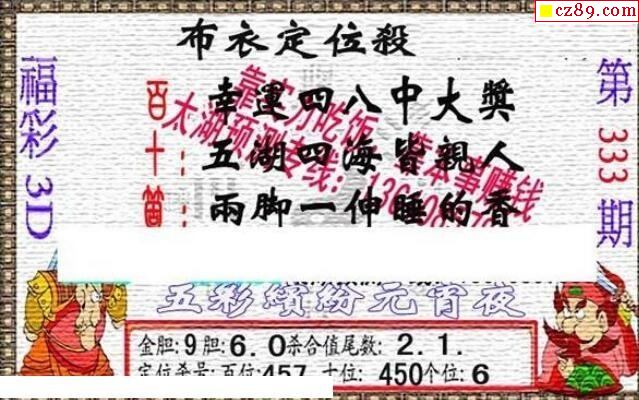 福彩3D2025334期 祁连牧哥百财纳福胆码图谜推荐