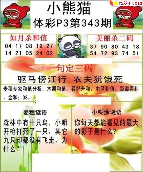 2021年343期牛彩网体彩P3画迷图谜汇总分享