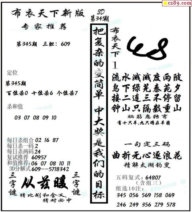 牛彩版3D字谜彩报图25年339期打印版