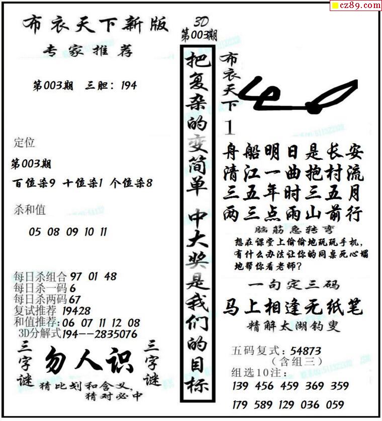 牛彩版3D字谜彩报图25年328期打印版