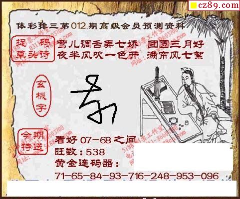 2022年012期牛彩网体彩P3画迷图谜汇总分享