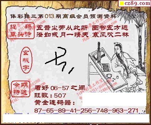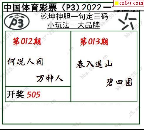 2022年013期牛彩网体彩P3画迷图谜汇总分享