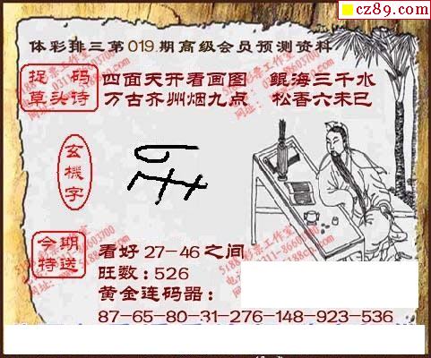 2022年019期牛彩网体彩P3画迷图谜汇总分享