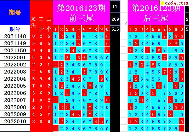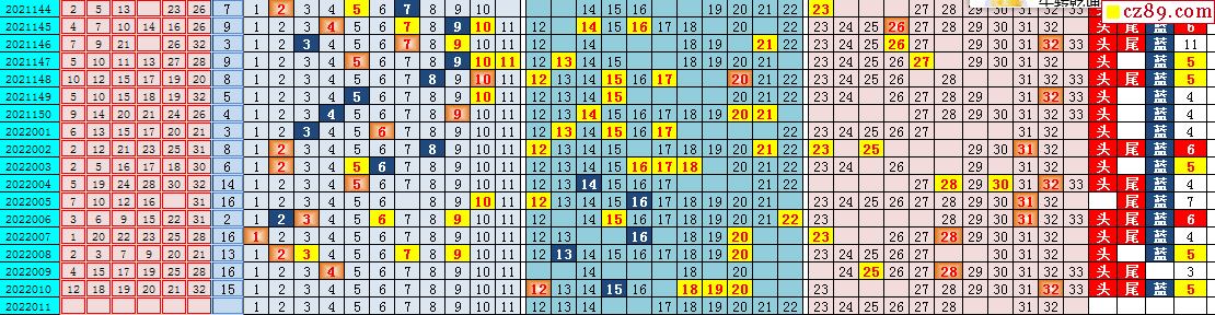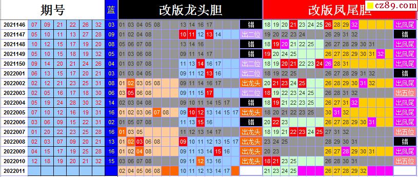 22年011期飞向阳光双色球龙头凤尾图表汇总