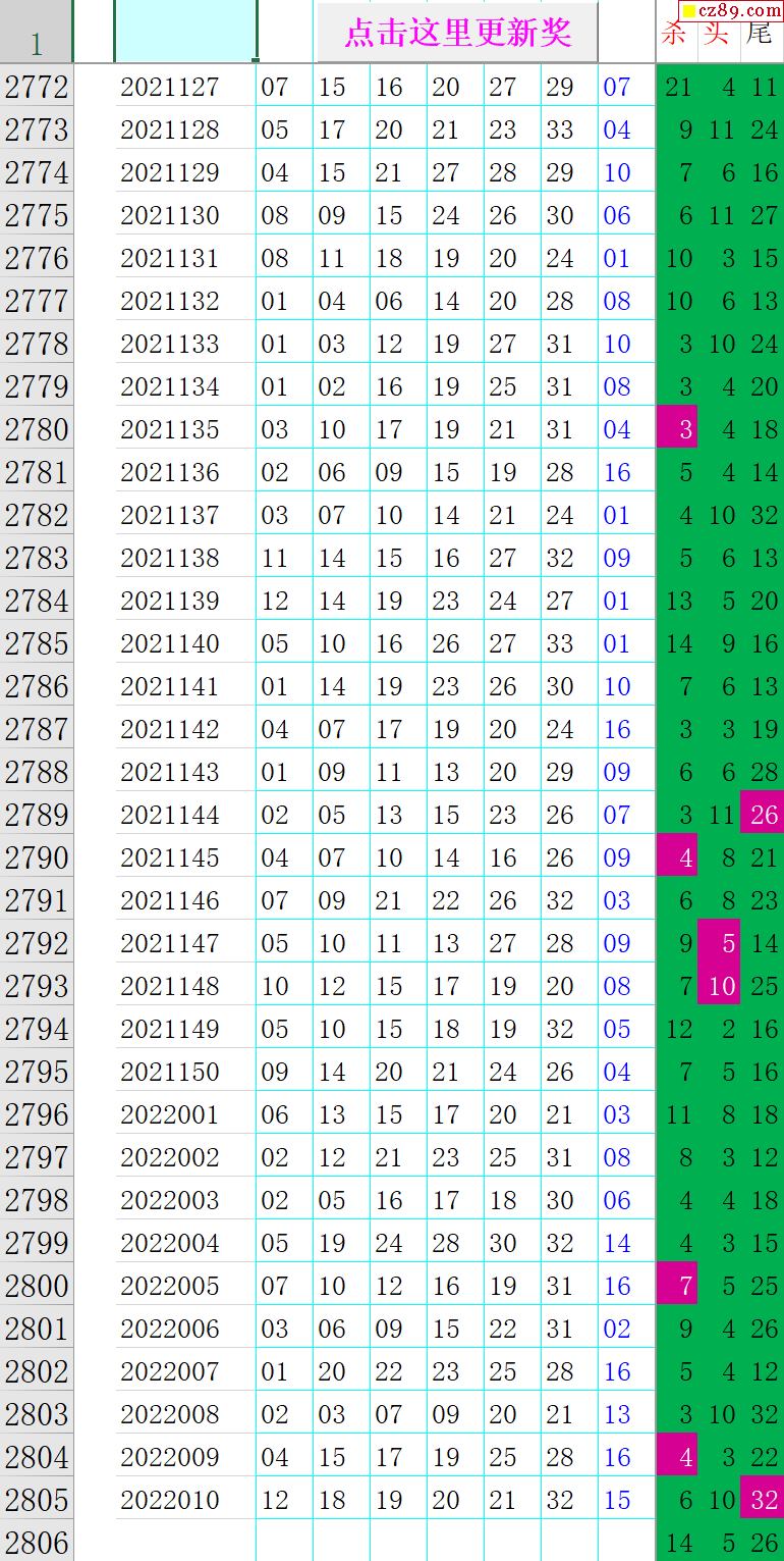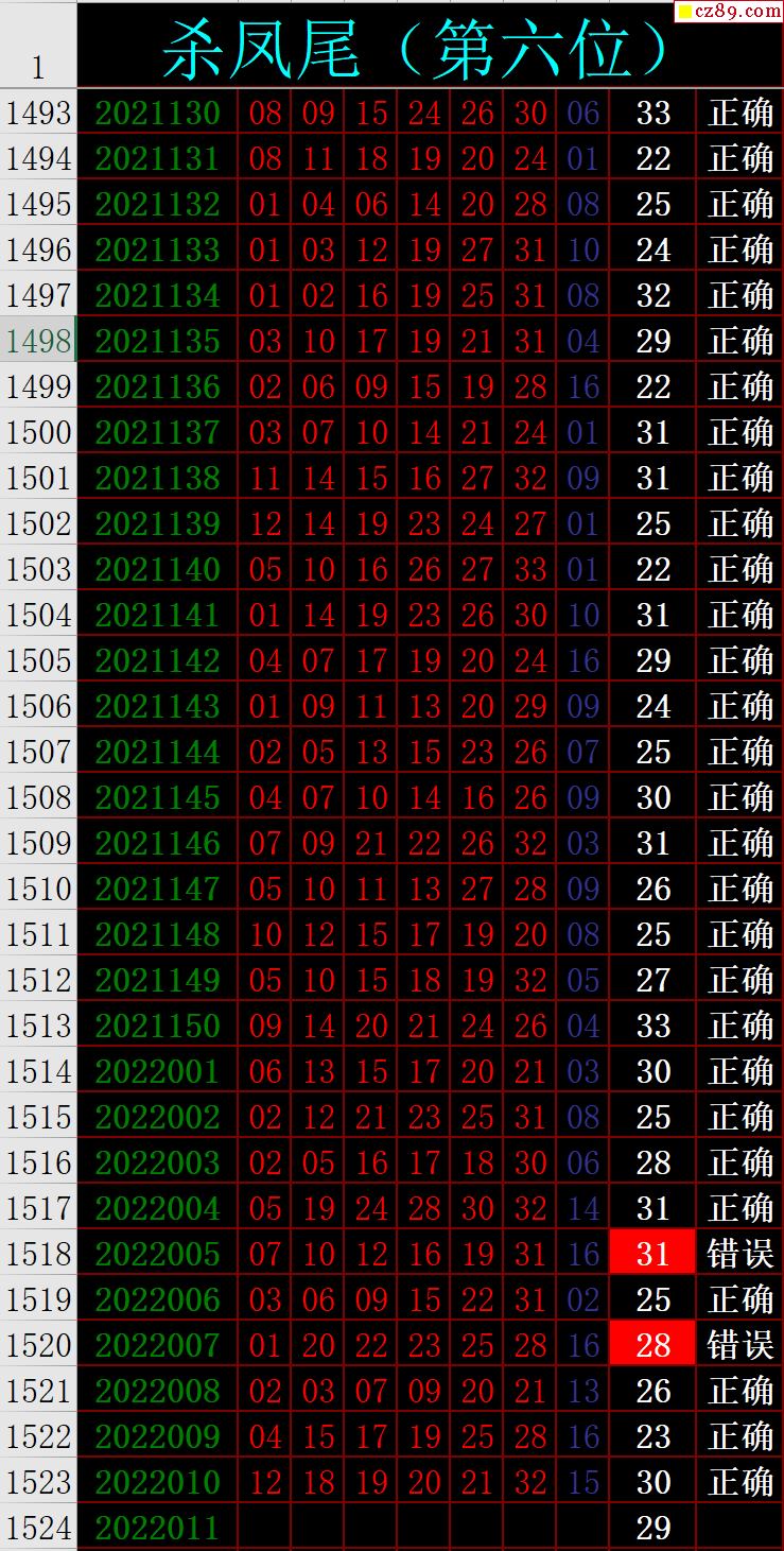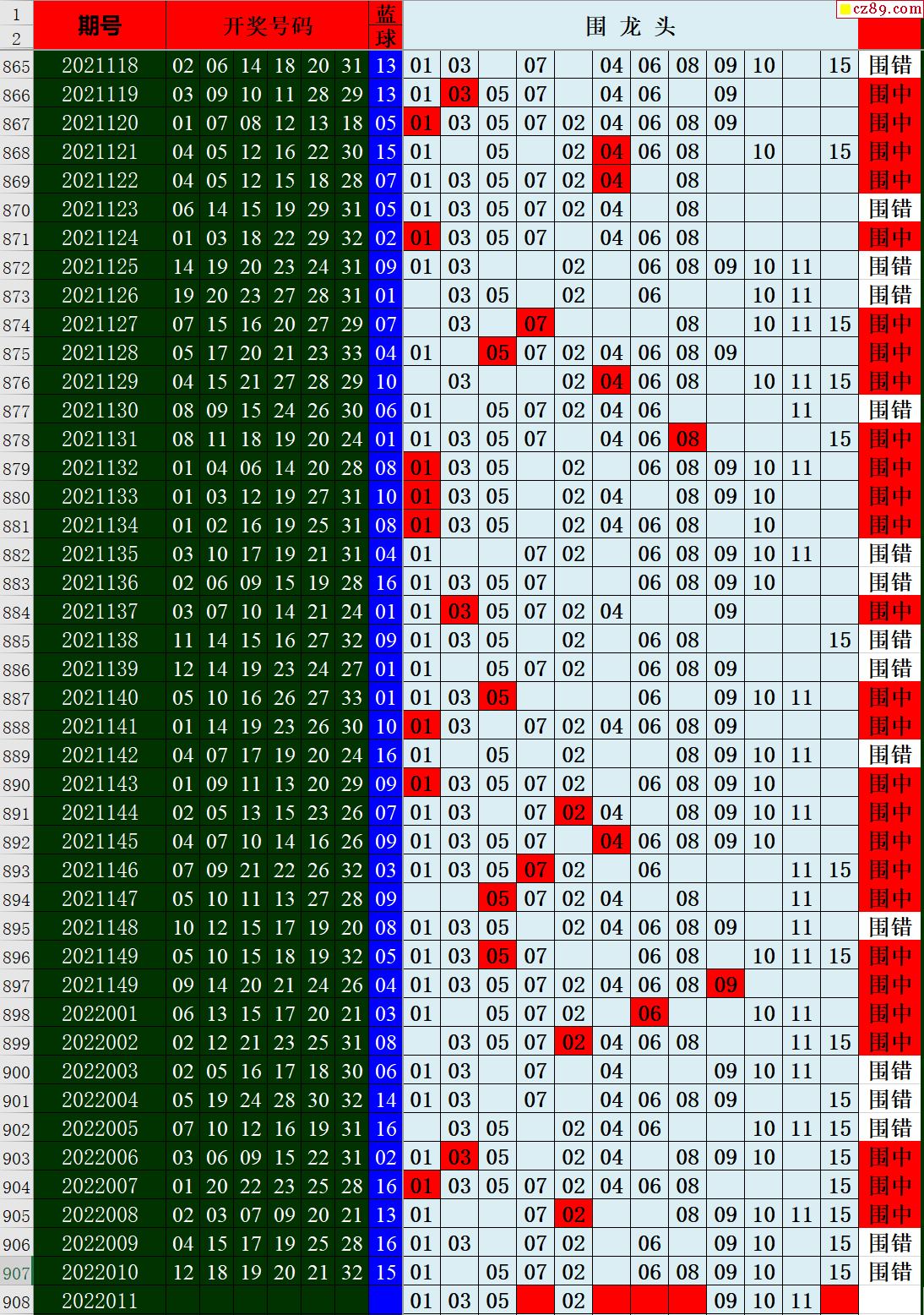 22年011期秋雨龙头凤尾走势图表
