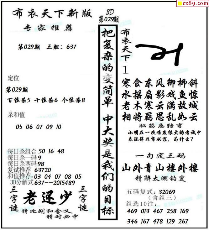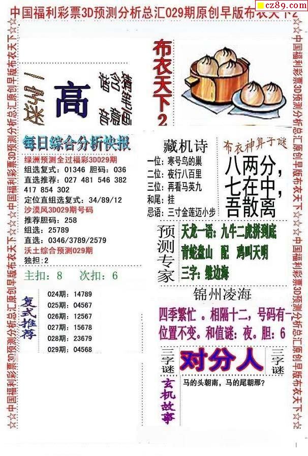 牛彩版3D字谜彩报图25年334期打印版