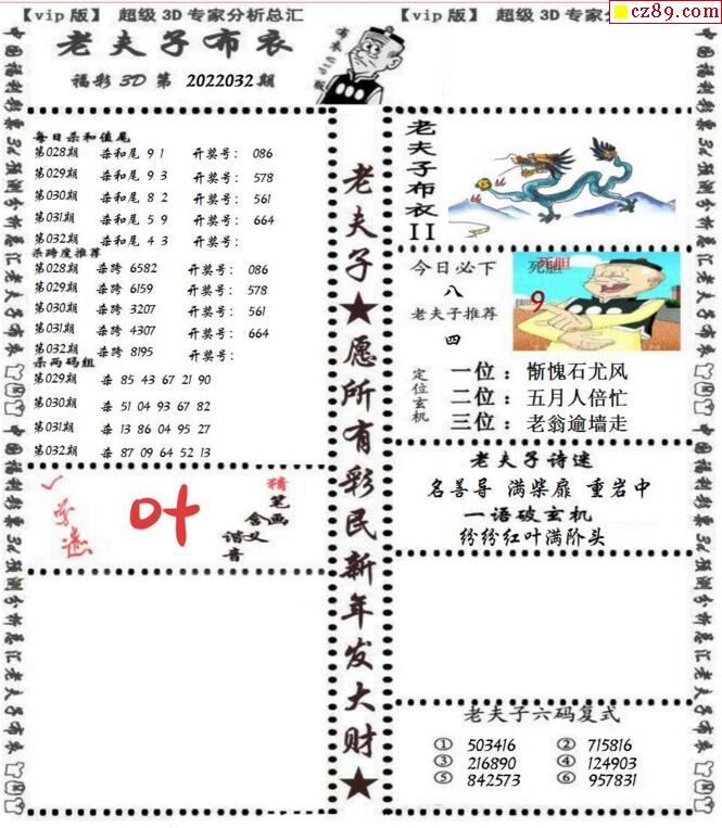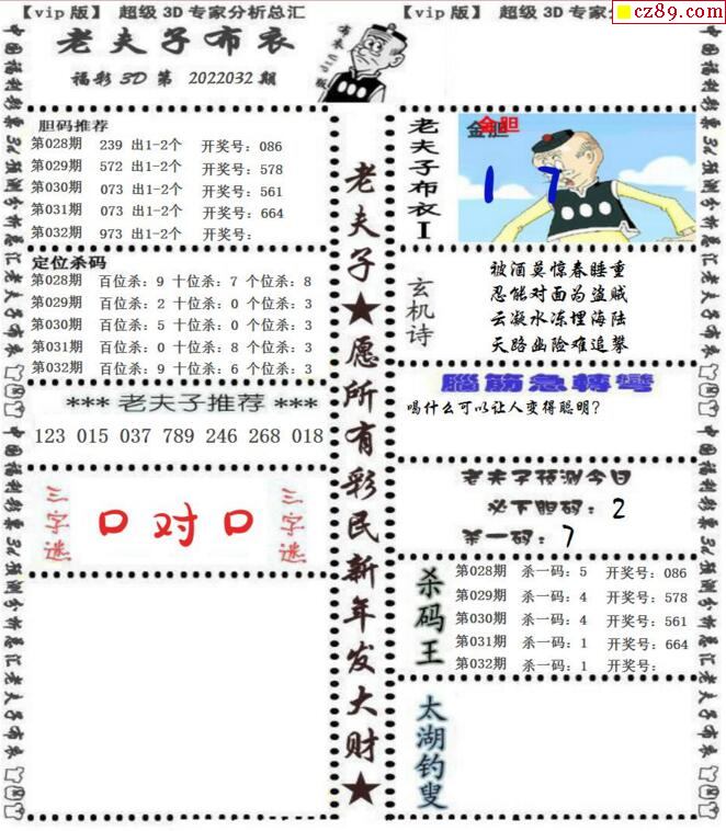 老夫子布衣2025341期3d图谜