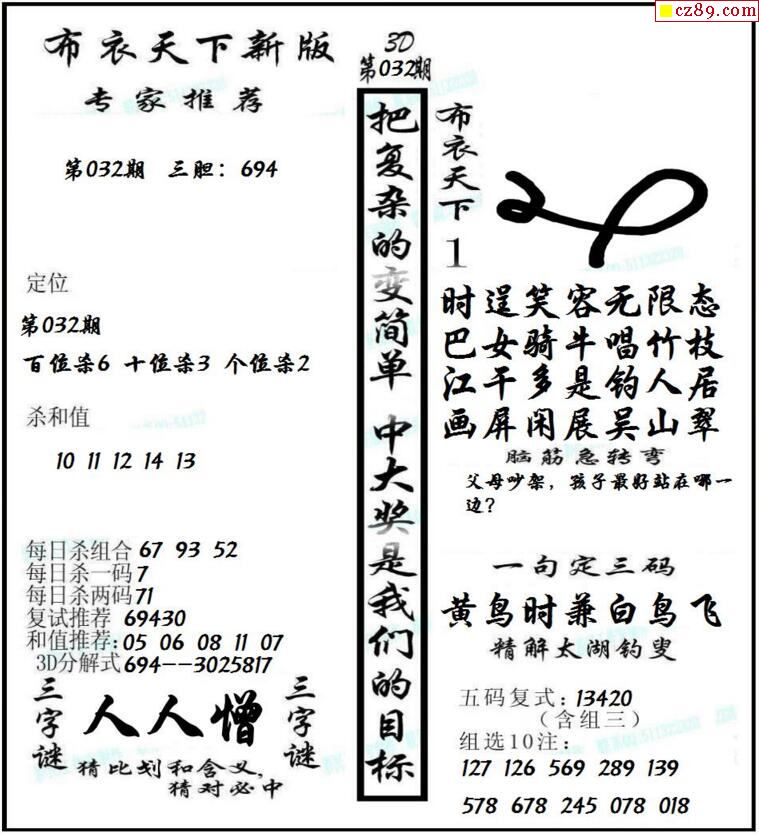 布衣天下新版2025341期3d图谜