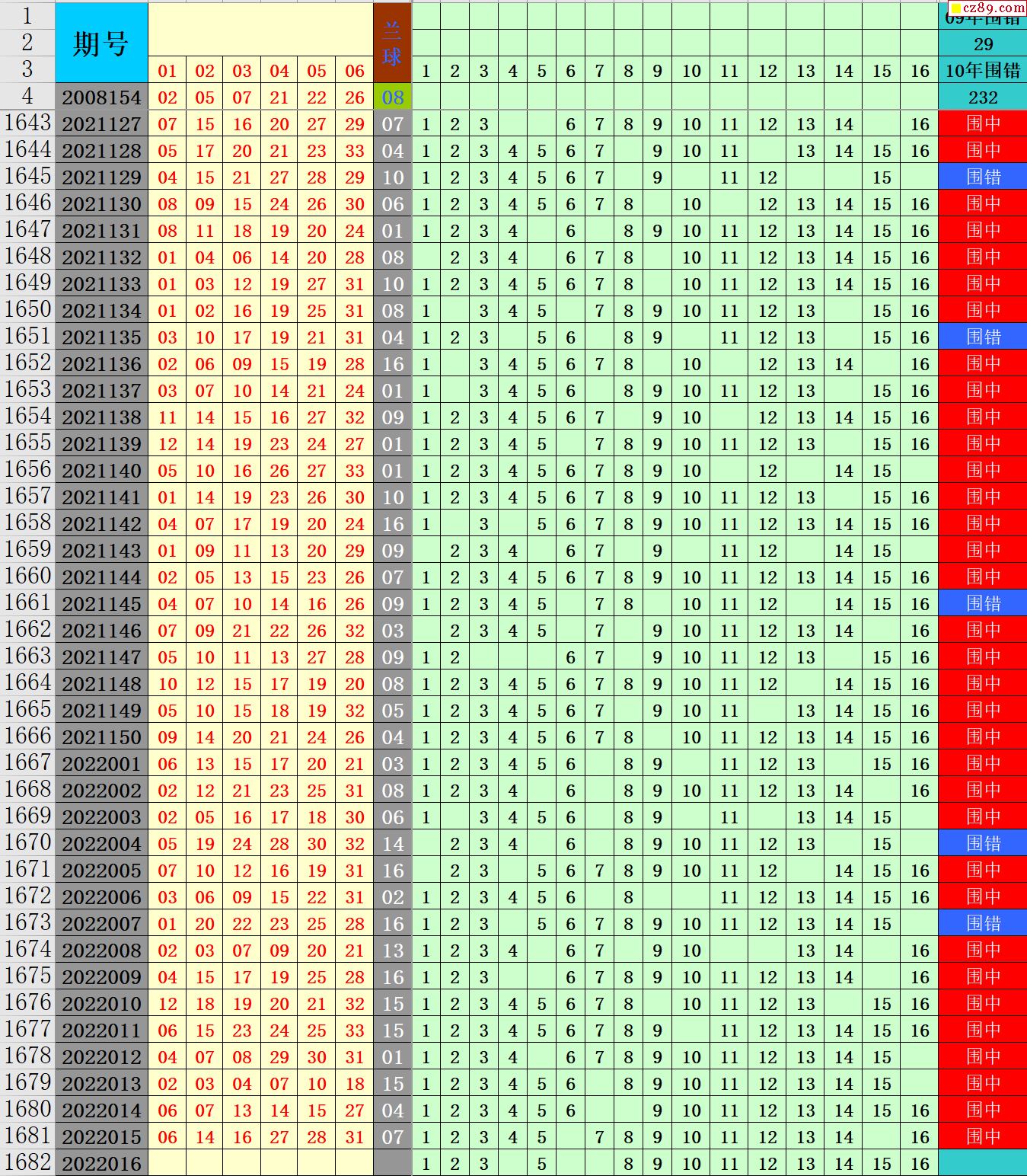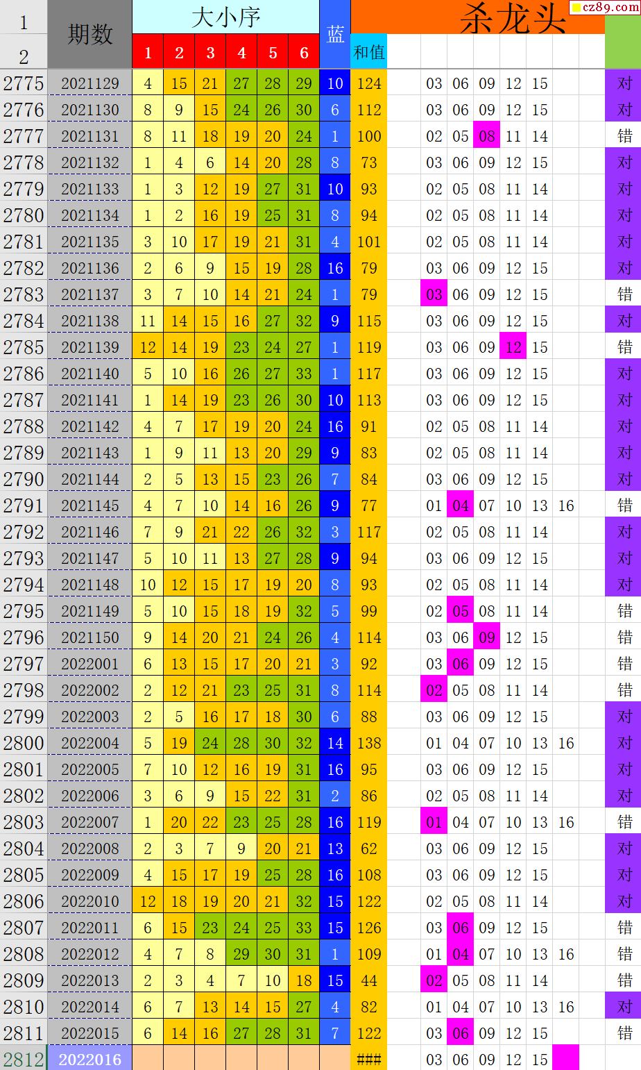 22年016期秋雨龙头凤尾走势图表