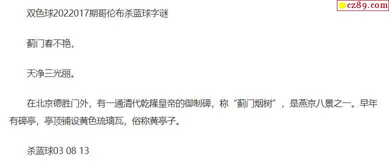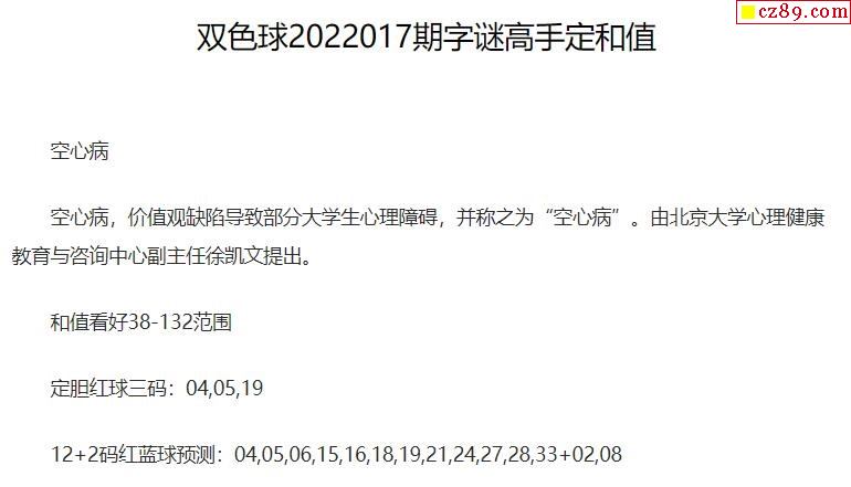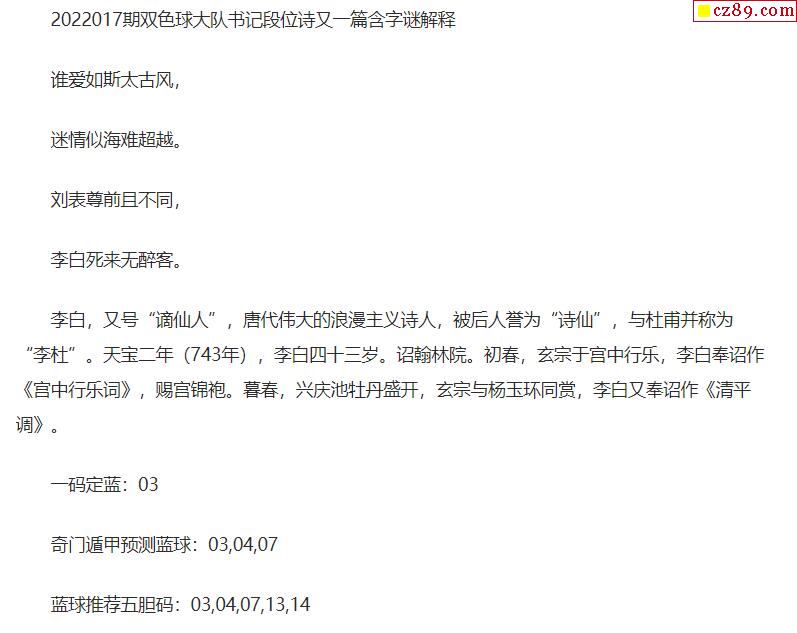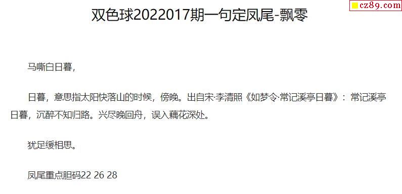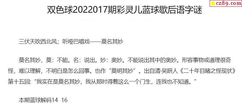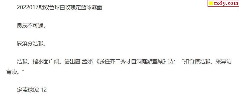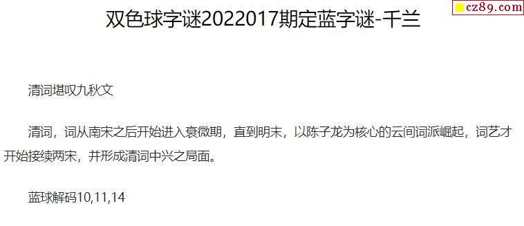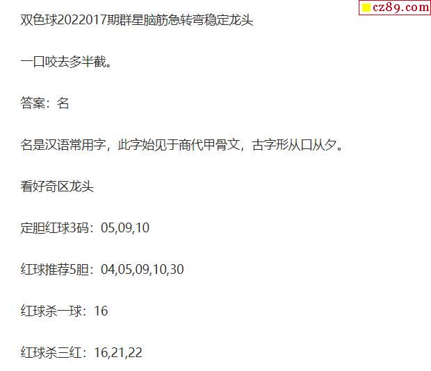2022年017期牛彩网双色球字迷图谜汇总