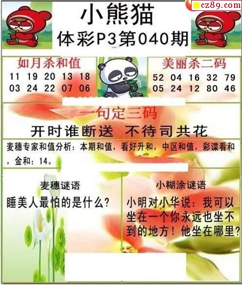 2022年040期牛彩网体彩P3画迷图谜汇总分享