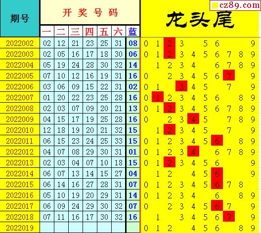 22年019期飞向阳光双色球龙头凤尾图表汇总