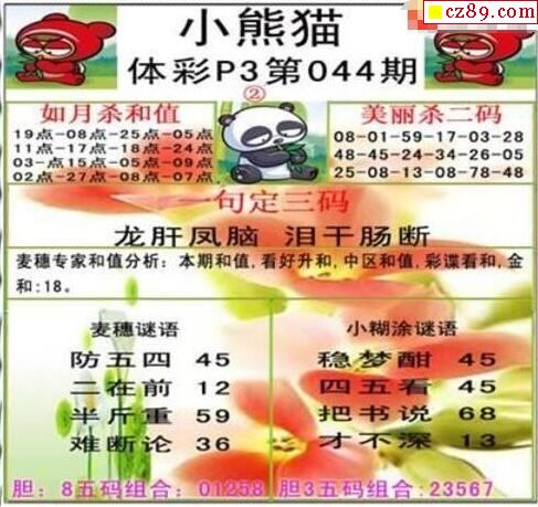 2022年044期牛彩网体彩P3画迷图谜汇总分享