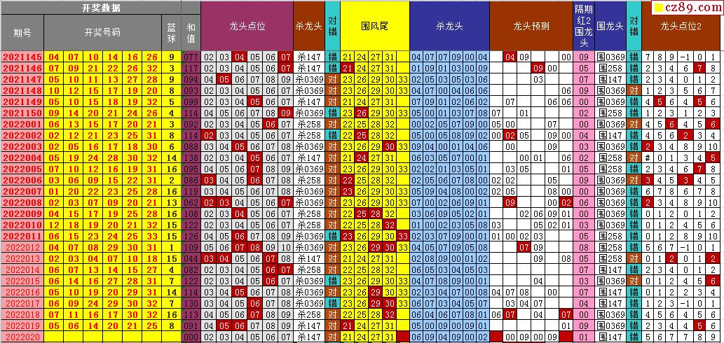 22年020期飞向阳光双色球龙头凤尾图表汇总