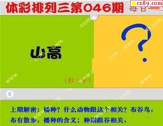 2022年046期牛彩网体彩P3画迷图谜汇总分享