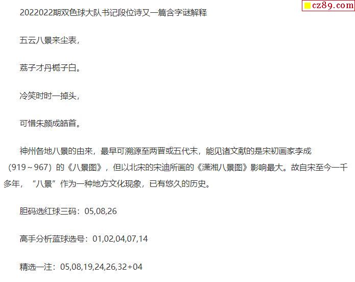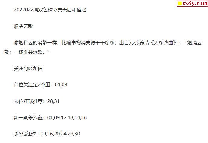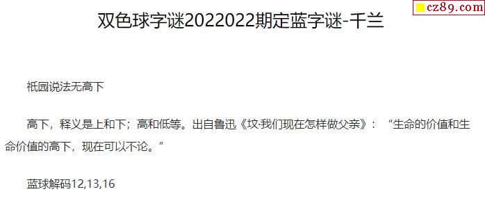 2022年022期牛彩网双色球字迷图谜汇总