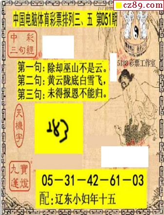 2022年051期牛彩网体彩P3画迷图谜汇总分享