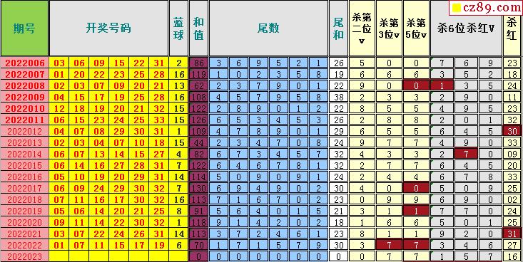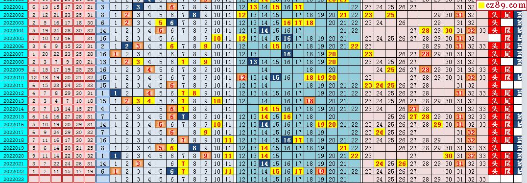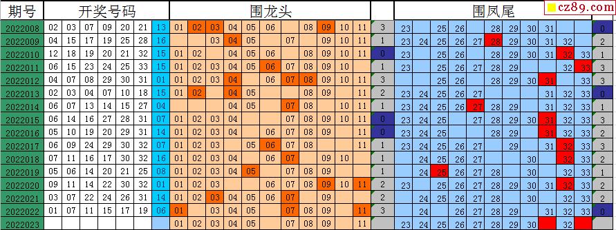 22年023期飞向阳光双色球龙头凤尾图表汇总