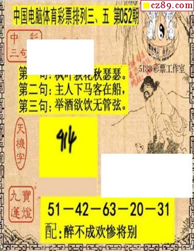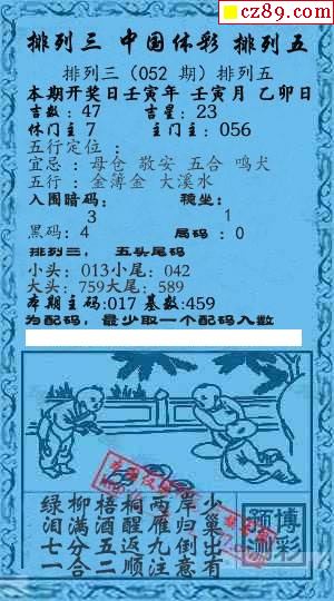 2022年052期牛彩网体彩P3画迷图谜汇总分享