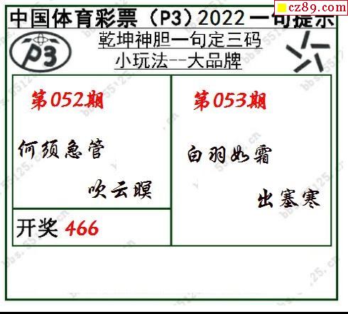 2022年053期牛彩网体彩P3画迷图谜汇总分享