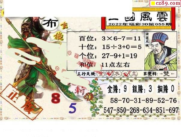 福彩3D2025330期福彩金刚一句定三码字图谜