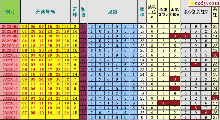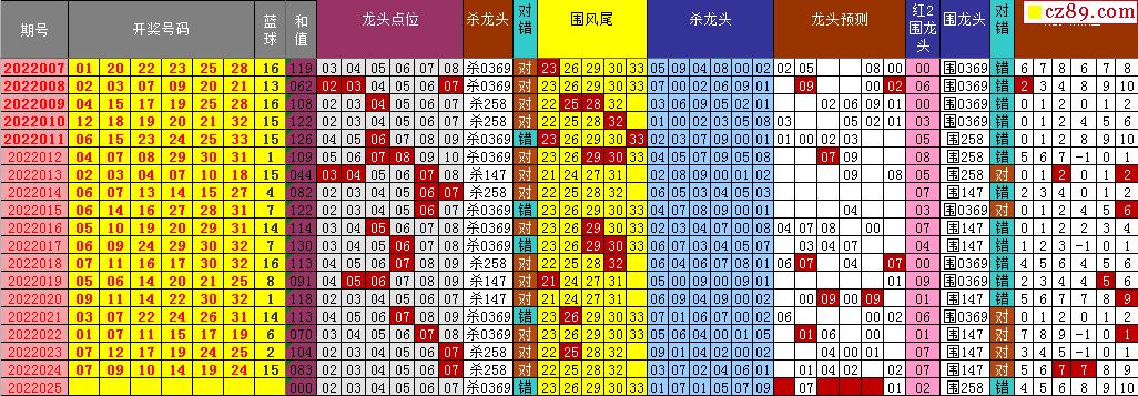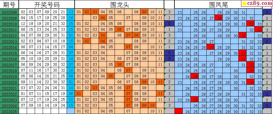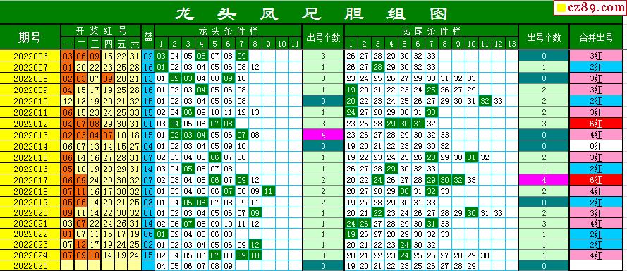 22年025期飞向阳光双色球龙头凤尾图表汇总
