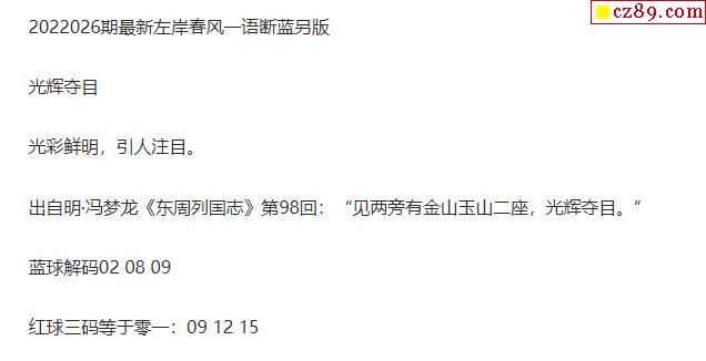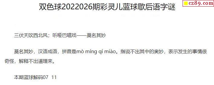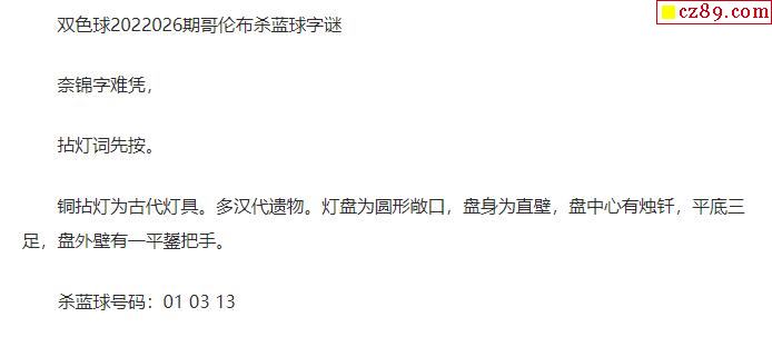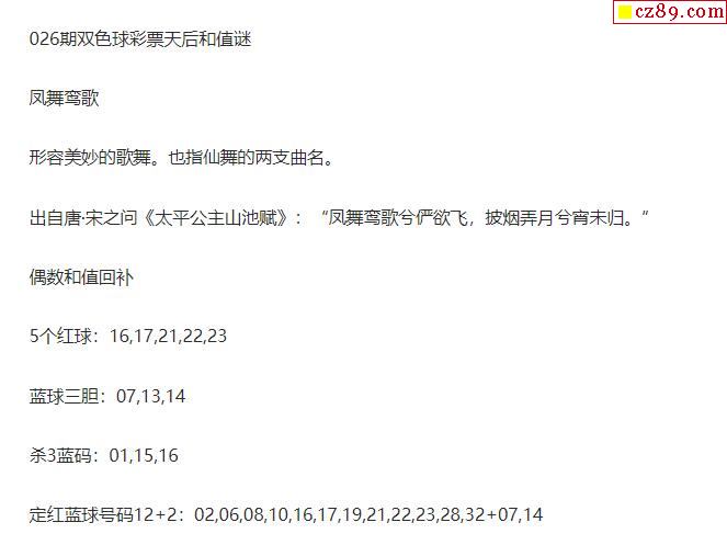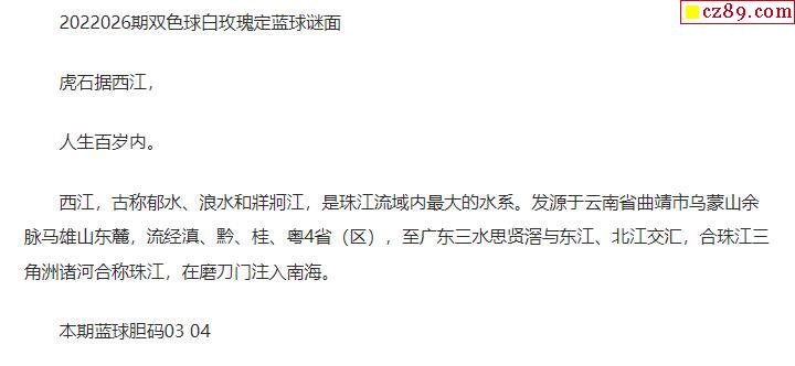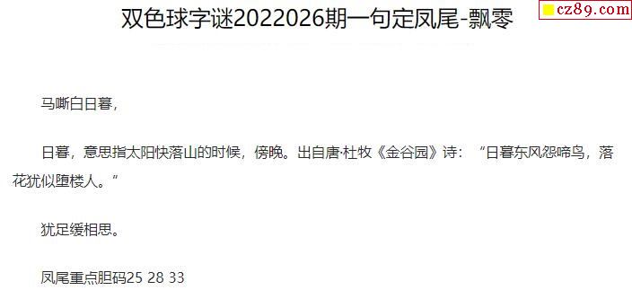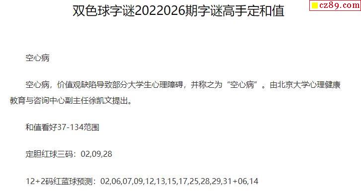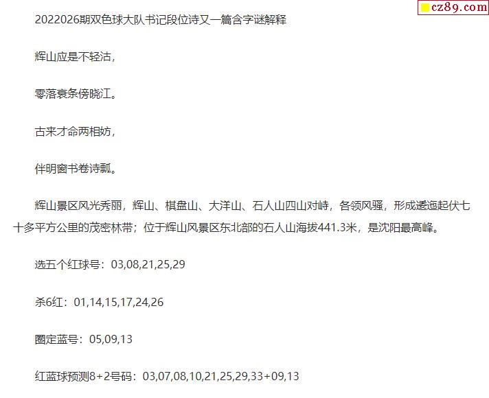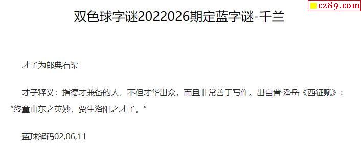 2022年026期牛彩网双色球字迷图谜汇总