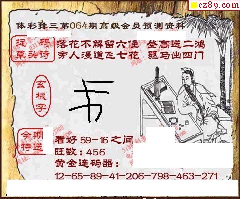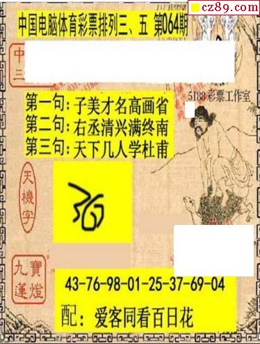 2022年064期牛彩网体彩P3画迷图谜汇总分享