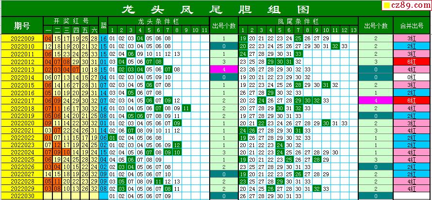 22年030期飞向阳光双色球龙头凤尾图表汇总