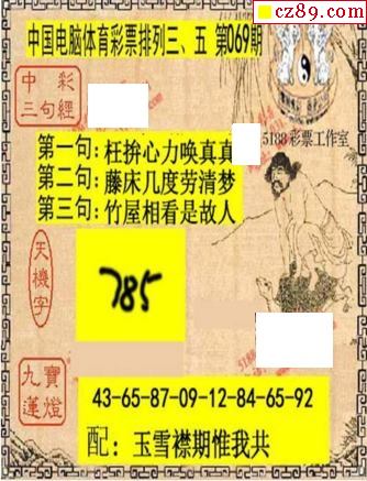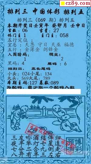 2022年069期牛彩网体彩P3画迷图谜汇总分享
