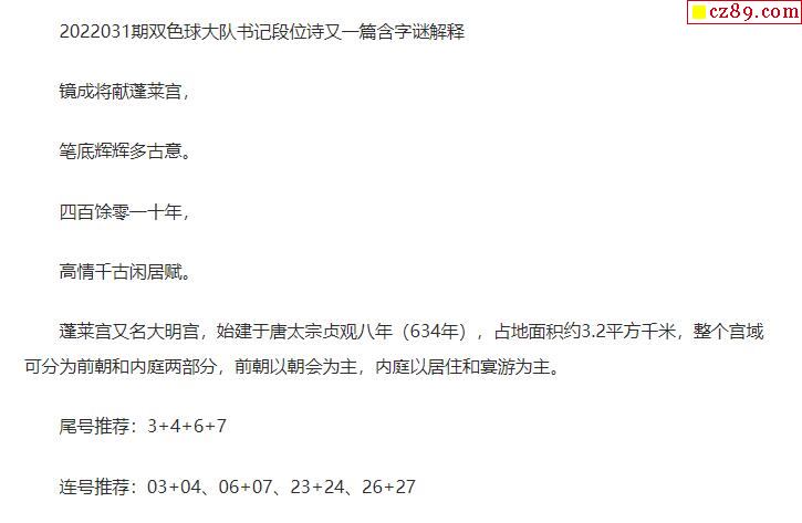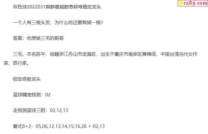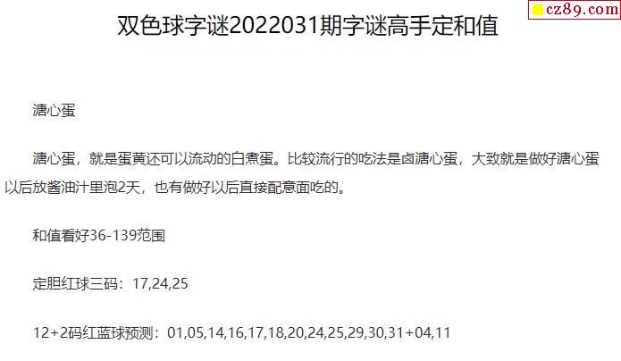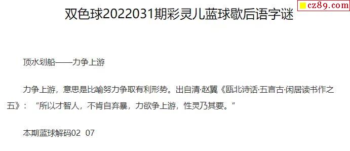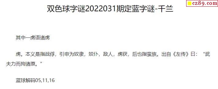 2022年031期牛彩网双色球字迷图谜汇总