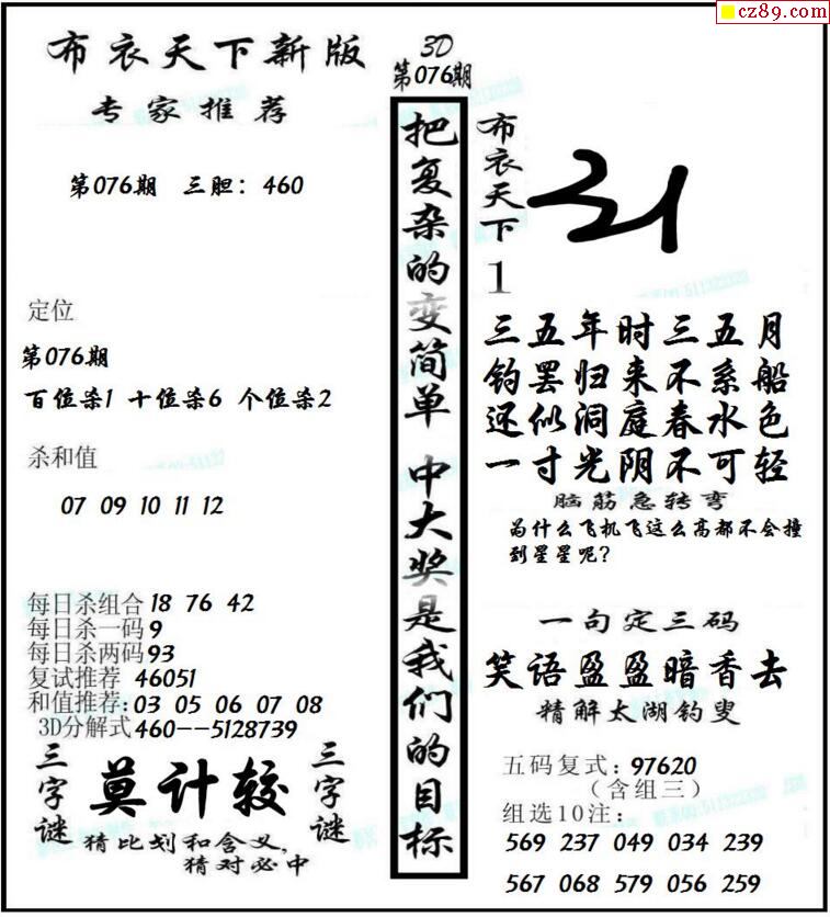 牛彩版3D字谜彩报图25年335期打印版