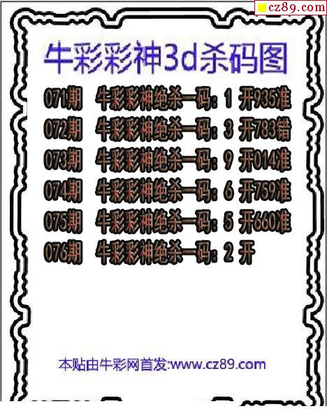 牛彩版3D预测彩报图25年331期打印版