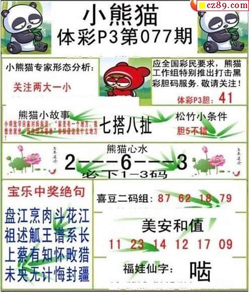 2022年077期牛彩网体彩P3画迷图谜汇总分享