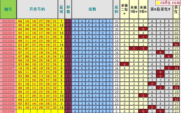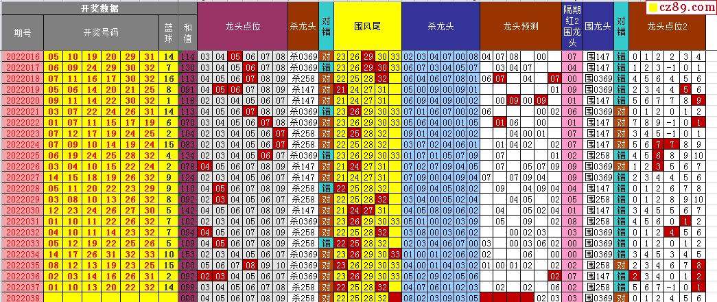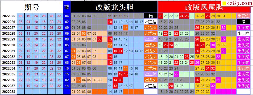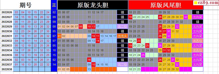 22年038期飞向阳光双色球龙头凤尾图表汇总