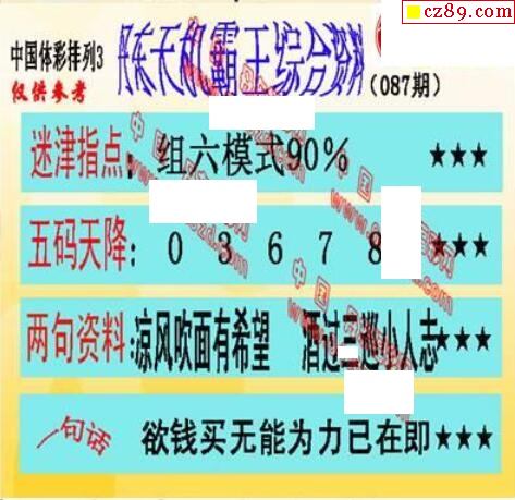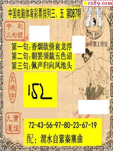 2022年087期牛彩网体彩P3画迷图谜汇总分享