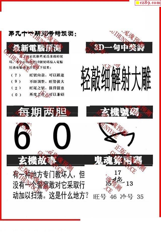 福彩3D2025335期 祁连牧哥百财纳福胆码图谜推荐