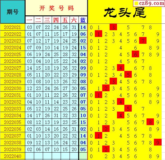 22年040期飞向阳光双色球龙头凤尾图表汇总